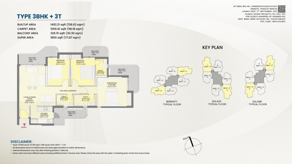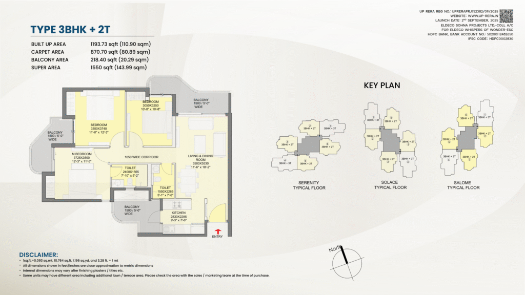 Eldeco WOW is a prestigious residential development created by Eldeco Group situated in Sector 22D of the Yamuna Expressway, Greater Noida. It covers 5 acres of land, the project is planned with an open-plan layout. It has three stunning towers rising to 32 floors, containing approximately 558 large units. The apartments are meticulously designed with open-plan layouts on three sides which allow plenty of natural sunlight and airflow. The layouts comprise three BHK units that range between 1,550 and 1,850 sq. feet. and lavish duplex penthouses with sizes up to 2,800 square. square feet. About 80% of the land is set aside for open space, which includes the central green, which is a 3 acre area. Residents can enjoy a variety of modern amenities, including half-Olympic pool, clubhouse and gym, yoga areas and amphitheaters, as well as sports courts and multipurpose halls. With 24-hour protection, a power back-up and high-end interiors The project is designed to provide the safety and comfort of. Strategically situated near to the planned Jewar International Airport, Eastern and Western Peripheral Expressways and the top malls, universities and hospitals. Eldeco whispers of wonders is not just a house, but also an excellent investment opportunity that promises the ultimate in luxury and value appreciation.